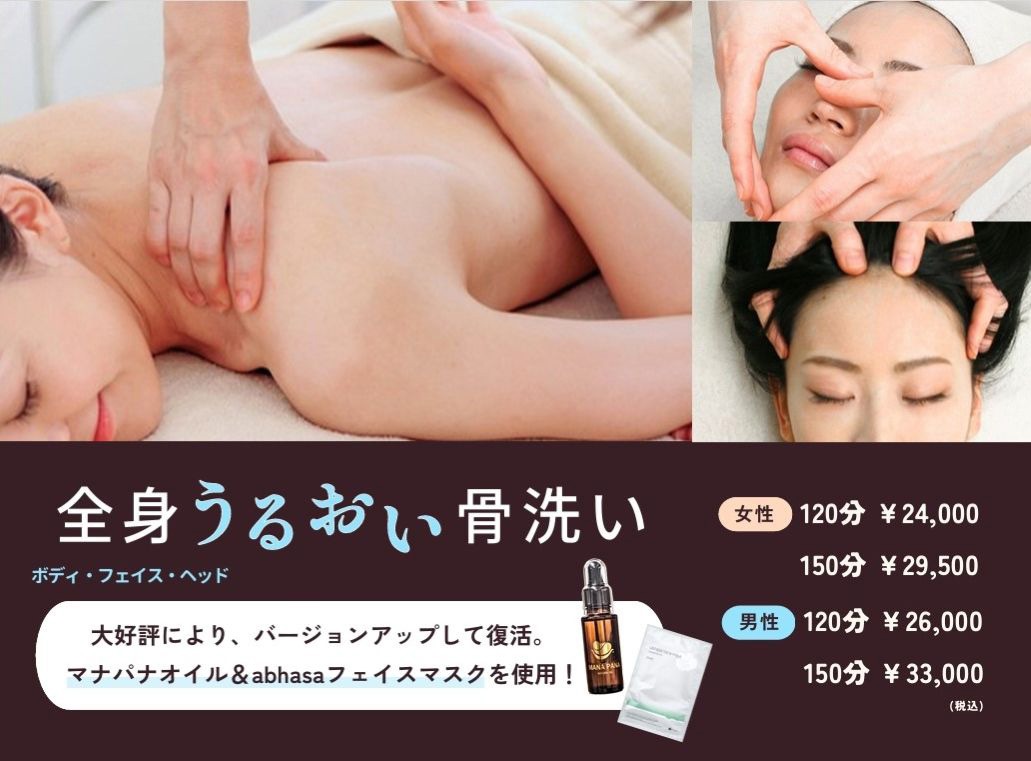 施術箇所:全身+フェイス+ヘッド(しっかり潤うフェイスパック付き!)